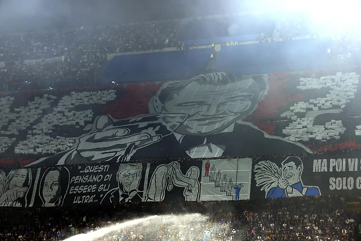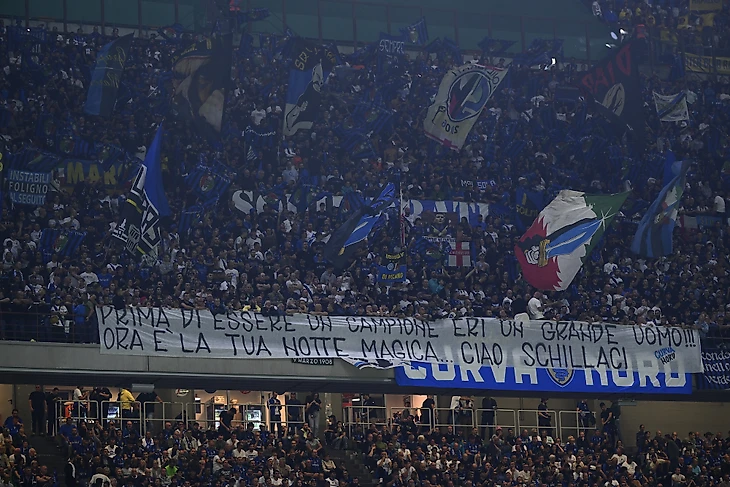А вот фэны «Интера», в отличие от своих коллег из «Curva Sud», от перфоманса на дерби решили отказаться, просто разложив на своей трибуне более 6.500 черно-синих флажков и вывесив памятный баннер в честь прославленного форварда Сальваторе Скиллачи, скончавшегося 18 сентября в возрасте 59 лет. Лучший бомбардир домашнего ЧМ-1990 много лет выступал за «Мессину», но затем заезжал в «Ювентус» и «Интер», с каждым из которых выиграл по Кубку УЕФА, прежде чем отправиться на футбольную пенсию в японский клуб «Джубило Ивата».