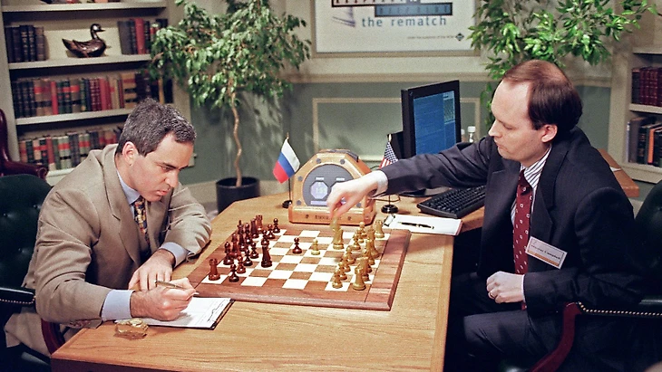 А теперь давайте применим вышеописанную логику к футболу (хоккею, баскетболу) и шахматам. Ключевое отличие здесь в том, что шахматы — это пошаговая игра, где ходы совершаются по очереди, а количество возможных событий дискретно: число всевозможных состояний (расположений фигур), хоть и велико, но всё же ограничено. Примерно так Deep Blue и обыграла Гарри Каспарова: она сразу отсеивала заведомо плохие стратегии, а оставшиеся тупо перебирала.