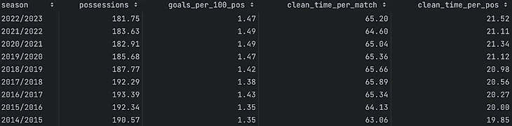 Мы пофилософствовали, но какое практическое применение наших рассуждений? Оно состоит в том, что мы можем предсказать развитие игры. Например, в одном из самых первых исследований в футболе (1968) было показано, что не нужно делать много передач, чтобы забить гол. Это противоречит современному футболу с контролем владения и прочими тики-таками. Но противоречия на самом деле нет — просто футбол изменился. Раньше футболисты были техническими менее развитыми, поэтому идея, что проще сделать одну длинную передачу в борьбу проще, чем совершить несколько точных коротких передач подряд.