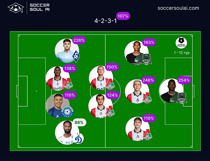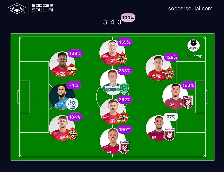 Единая сборная РПЛ - схема 4-3-3 (gIQ 154%)