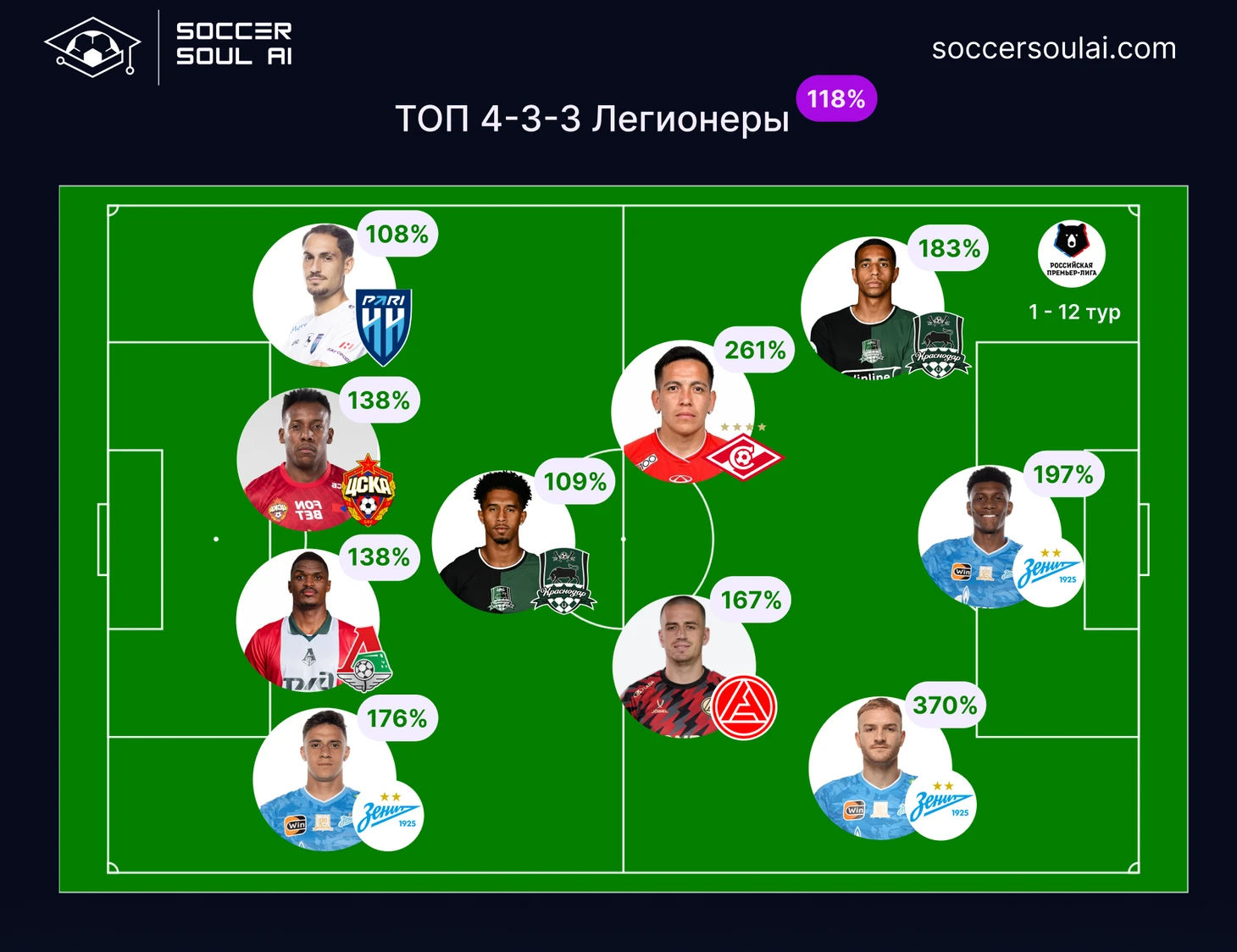Сборная РПЛ (легионеры) - схема 4-3-3 (gIQ 118%)