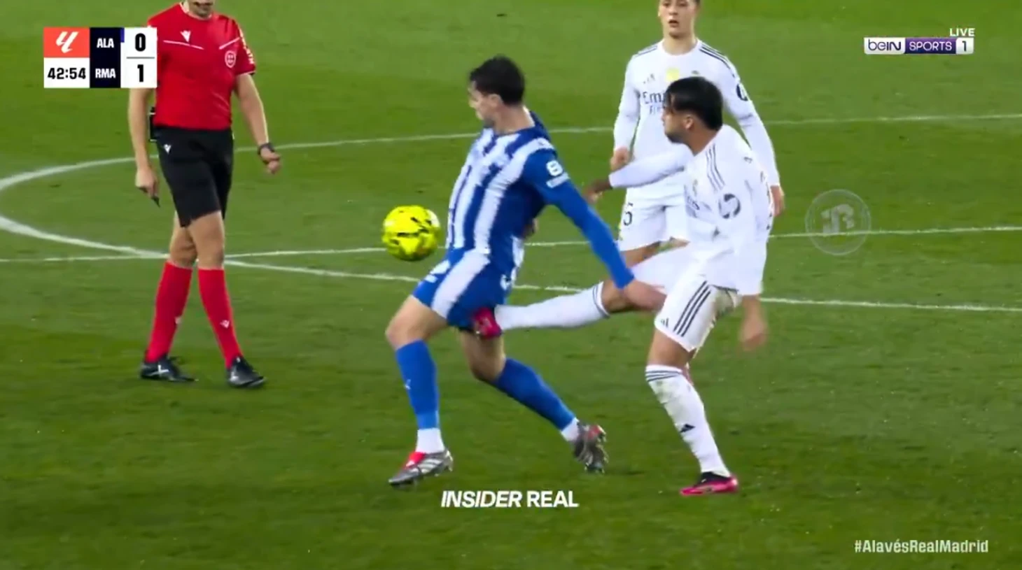 Асенсио отыгрался в матче с «Алавесом», в которой его команда вырвала победу со счетом 2:1. Рауль находился позади соперника и, возможно, хотел выбить у него мяч. Получилось же то, что вы можете увидеть на скриншоте.